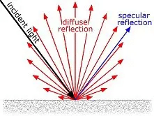 angle of illumination as some of the light penetrates the surface material and is absorbed into it or diffusely scattered from it depending on its colour. Metals have a much higher reflection and are therefore less angularly dependant.