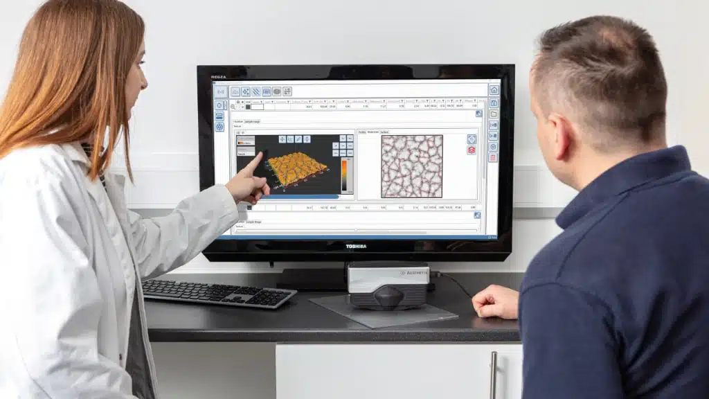 Aesthetix may be plugged directly into a Windows 10 or 11 compatible device and may also be used in conjunction with collaborative robots (โcobotsโ) in automated workflows such as high-throughput experimentation. It works through USB-3.0 connection, operates without batteries and is ideally suited to the laboratory environment, but also offers some portability by being tablet-compatible. It also boasts no less than nine interior light sources โ six of them arranged in a ring โ and offers on-screen resolution of 10 ฮผm/pixel โ a power similar to a 100x laboratory microscope; Rhopoint Appearance Elements software facilitates digital image capture of any surface under analysis. The product is the result of extensive R&D co-operation with scientists at the University of Leuven in Belgium and a broader research co-operation with some of the worldโs leading surface coatings manufacturers.