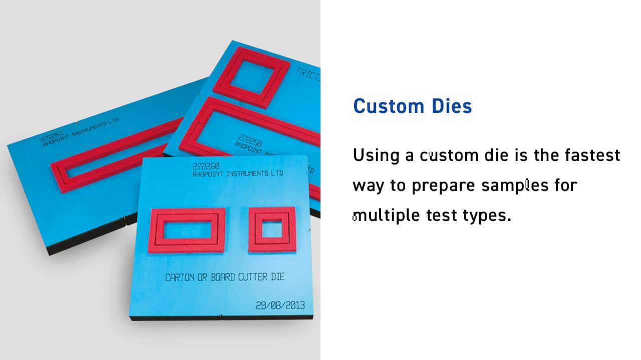 Using a custom die is the fastest way to prepare samples for multiple test types. From a single sheet of material, samples can be prepared accurately and quickly.